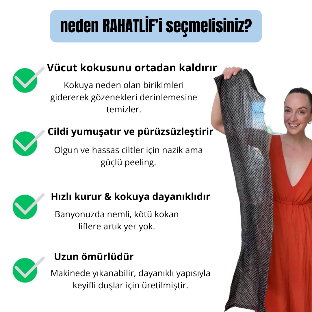 Evet , Rahatlif Antibakteriyel Peeling Duş Lifi kuru, yaşlanan ve hassas ciltler için tasarlanmıştır. Dengeli Peeling Teknolojimiz ™ tahriş etmeden nazikçe peeling yapar, kolajen üretimini uyarır ve cilt dokusunu iyileştirir. Bambu Kömürü Lifleri ve Gümüş İyon malzemeleri güvenli ve etkili bir peeling sağlar, bu da onu hassas ciltlerde günlük kullanım için ideal kılar.